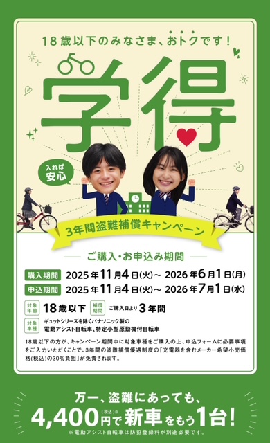 2026年6月1日までパナソニックの対象車種をお買上げの18歳までのお客様に、
